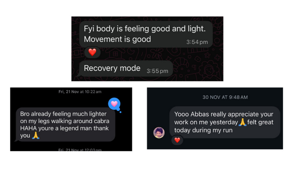 | What techniques do you use? | Sports massage, cupping and assisted stretching. We mix what’s needed on the day to get the best result. |